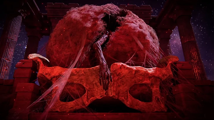 Напоминаю, что Микелла и Маления – дети королевы Марики, полубоги, которые с рождения прокляты. Малению изнутри пожирает красная гниль (но мы облегчим ее страдания), Микелла же обречен навсегда оставаться в теле ребенка. Он постоянно искал средство, чтобы снять это ужасное проклятье, посадил Святое Древо и поместил себя в кокон, который украл коварный Мог… но наш клинок его нашел!
