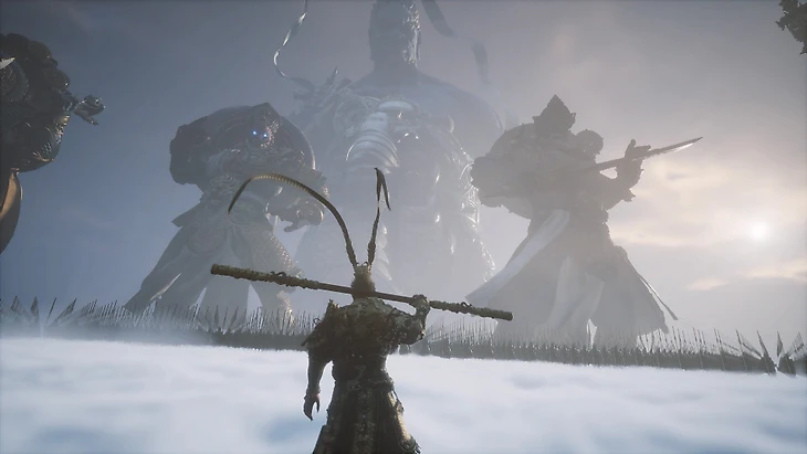 Wukong начинается с эпика в духе битвы с Тором из God of War: Ragnarok. Вы – могущественный Король Обезьян, который и в птицу превращается, и клонов призывает, и даже время останавливает. Впереди армия негодяев с великими магами и колоссами, что еле помещаются в экран. Битва с ними невероятна: персонажи крутят пируэты, оператор выбирает роскошные ракурсы, монтажных перебивок – минимум. После такого зрелища хочется кидать деньги в экран и ставить 12 из 10.