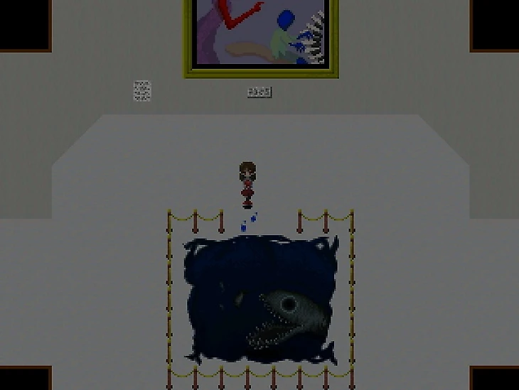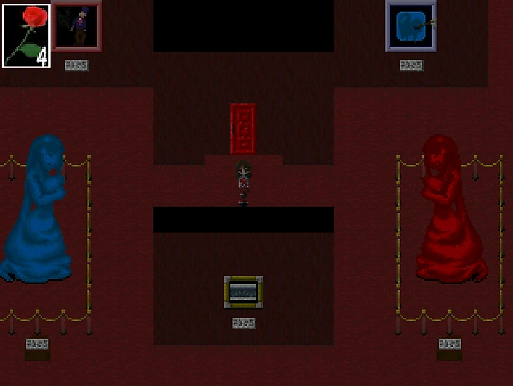 С этого-то и начинается весь замес: Иб попадает в параллельный мир, в котором произведения художника Вэйса Гуэртены, выставку которого она и посещала, вдруг начинают оживать. Настроены они, к сожалению, не очень дружелюбно, но мы всё равно продолжаем попытки выбраться из этого безумия, попутно исследуя сюрреалистичную реальность, что в буквальном смысле представляет из себя произведение искусства.