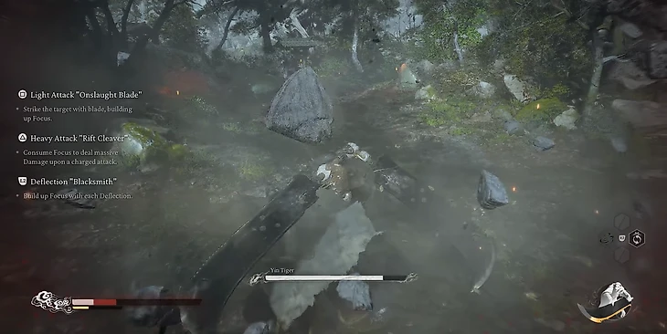 Отклонение «Кузнец» – удерживайте назначенную кнопку или клавишу, чтобы блокировать атаки своим мечом, что позволит вам накопить больше фокуса.