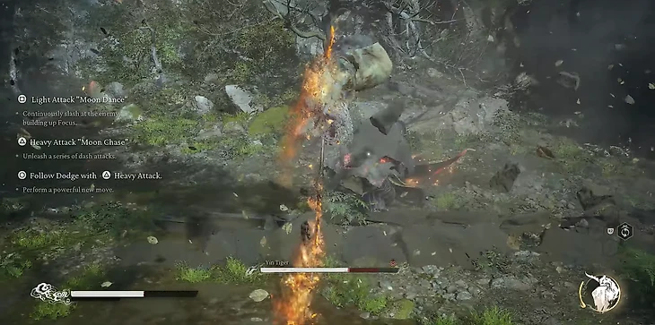 Тяжелая атака – Серия рывковых атак. При полном фокусе уклонение в любом направлении и последующее уклонение запускает новое мощное движение.