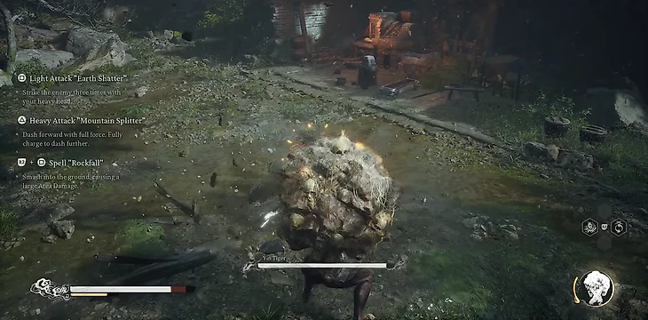 Заклинание «Камнепад» – Сосредоточьтесь, после чего прыгните в воздух и нанесите удар по площади (АоЕ).