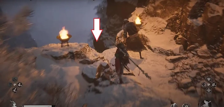 Справа у скалы вновь увидите замерзающего искателя сокровищ.