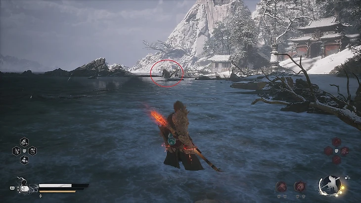 Повернитесь спиной к алтарю и бегите вдоль левого берега. Вскоре увидите Старого луна, который барахтается в воде. Отмечу, что при первом прохождении третьей главы я на заметил персонажа. Возможно, он появляется ближе к концу четвертой.