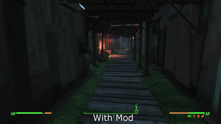 Однако этот мод поможет таким людям, как и я сам. Все источники света становятся намного ярче, что увеличивает вашу внимательность, а также поможет не пропустить что-то важное на пустой Пустоши.