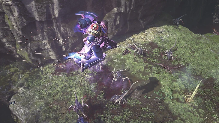 Получается, Space Marine 2 – идеальная игра? Да, если вы соответствуете двум критериям: дико соскучились по зрелищным линейным экшенам и не обделены друзьями. Здесь как в Gears 5. С Титом всегда бегают два напарника: ими может управлять ИИ, но интеллектом он не блещет. К примеру, охотно станит врагов и затем не добивает их. В итоге тираниды приходят в себя и снова стреляют.