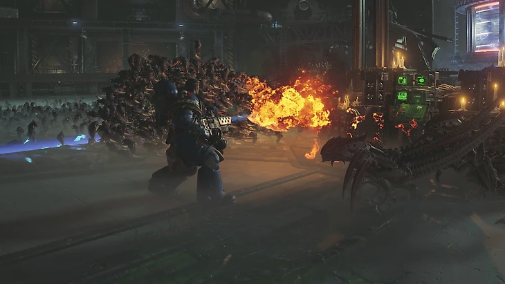 Сюжетная кампания проходится за 12 часов – идеальный хронометраж, чтобы не устать от безостановочного мяса. Тем более тебе постоянно подкидывают нечто интересное. Устали рубить обычных монстров? Познакомьтесь с невидимыми ликторами и боссами размером в половину экрана. Вдоволь настрелялись? Держите огнемет и спалите орду засевших в лаборатории гаунтов. Устали от тиранидов? Встречайте архиврага Империума, всепоглощающий Хаос. Стерли сапоги? Хватайте реактивный ранец и летайте по многоуровневой локации.