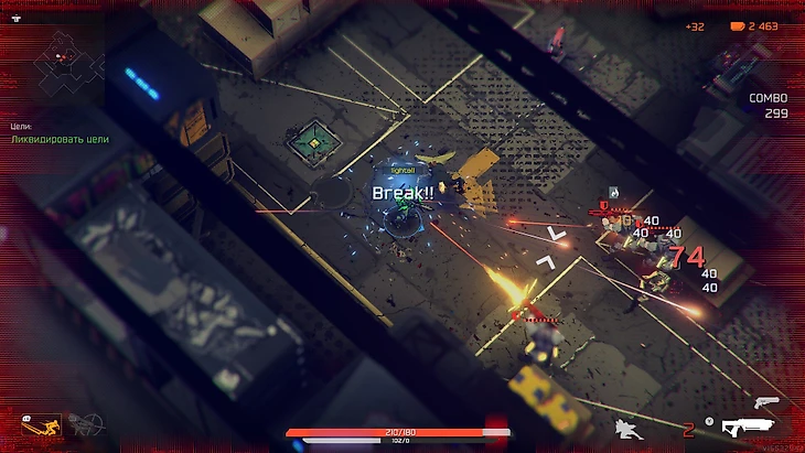 Полагаю, для маленькой команды со скромным бюджетом сюжет не был приоритетом. Разработчики поставили на геймплей и правильно сделали. Каждая миссия – череда арен, где роботы и бандиты вылетают из-за дверей и развязывают бойню. Уклоняйтесь от выстрелов, разряжайте обоймы, рубите всех клинком, безжалостно добивайте и применяйте способности – от выпуска турели до создания поля, увеличивающего урон.