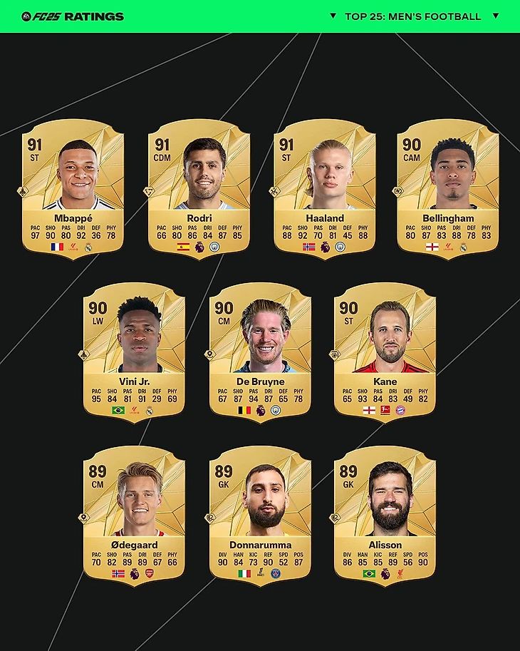 В FC 25 вышли официальные рейтинги. Лучшие – Мбаппе, Родри и Холанд
