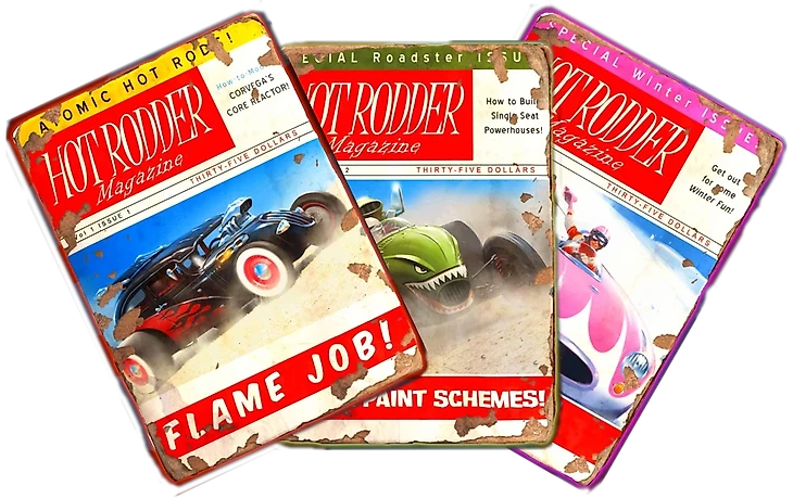Небольшая коллекция из трех довоенных журналов. Каждый из них – руководство по покраске автомобиля, однако после войны им придумали новое назначение – с их помощью окрашивают силовую броню. Дополнительных бонусов, кроме визуального эффекта, журналы не привносят.