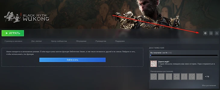 Откройте библиотеку Steam. Найдите Black Myth: Wukong в списке игр.