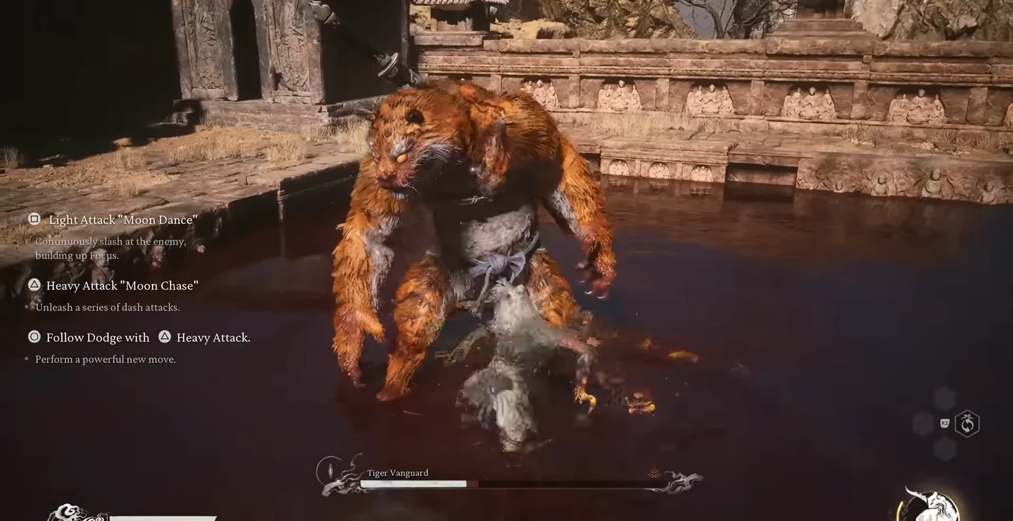 Когда Страж-тигр застывает, используйте тяжелую атаку, когда он снова начнет двигаться, потому что если вы начнете атаковать раньше, он парирует атаку и нанесет мощный удар когтем.