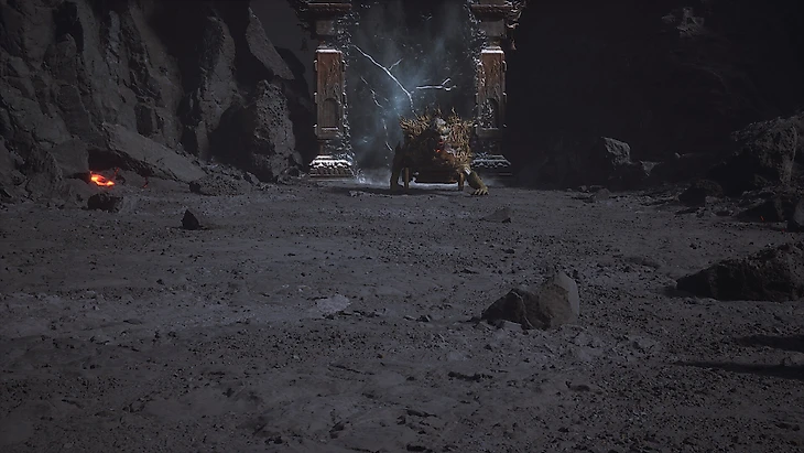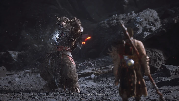 Отправляйтесь по тропе от святилища Хранителя Пепельного прохода (первого алтаря в пятой главе). Вскоре вы доберетесь до места, где разворачивается жаркая битва, а с небес обрушивается огненный дождь. Одолейте здесь быка, и он превратится в NPC, с которым можно поговорить.