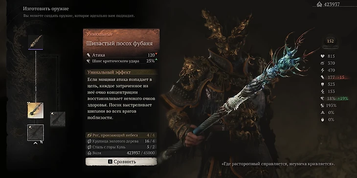 Поэтому это оружие можно изготовить только в Новой игре+, еще раз победив Фубаня. Однако это не займет много времени, ведь вы вернетесь к нему уже с новой силой.