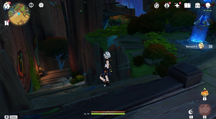 Если идти от телепорта по мосту не сворачивая, сверху откроется вид на нужную локацию.