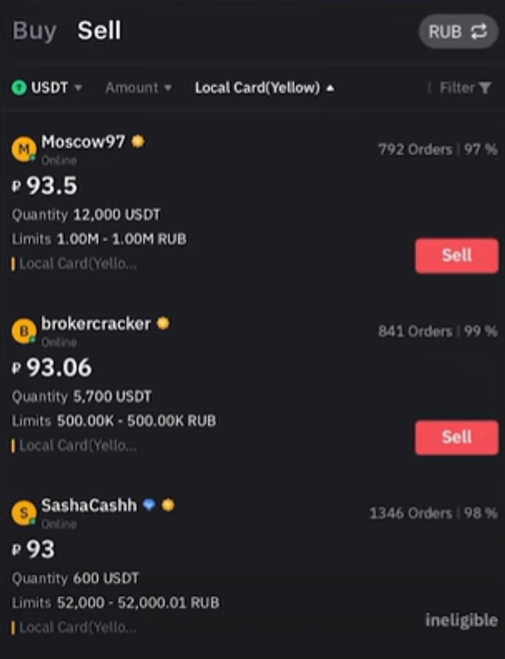 После того, как вы определитесь, нажмите Sell и введите данные вашей карты и количество USDT для вывода.