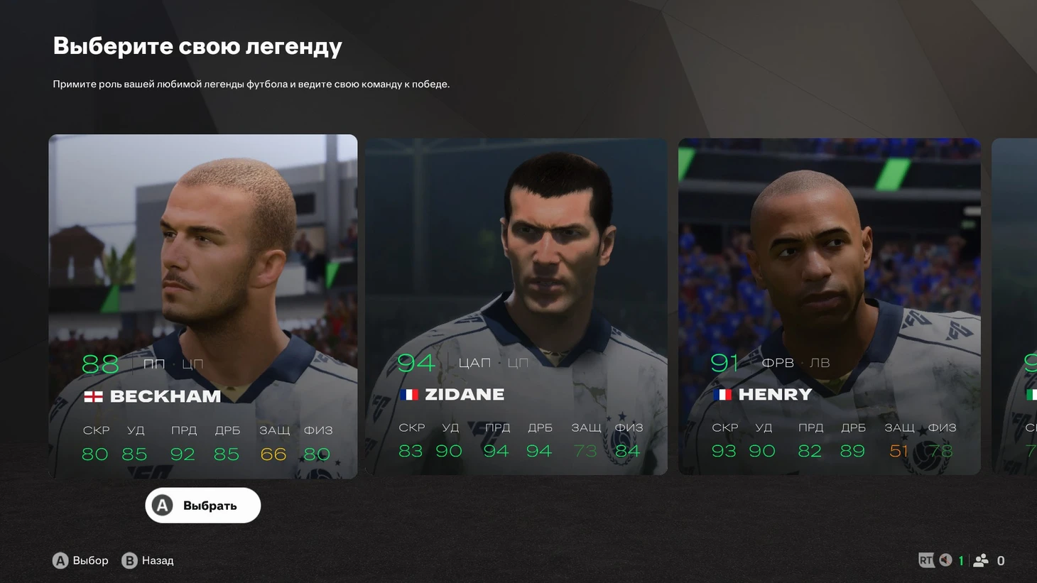 Главное в карьере за игрока – так называемый «Путь кумира». На релизе дают сыграть за Дэвида Бекхэма, Зинедина Зидана, Тьерри Анри, Андреа Пирло, Руда ван Нистелроя и Роналдо; женский футбол представляет Келли Смит. Список обещают обновлять по ходу сезона.