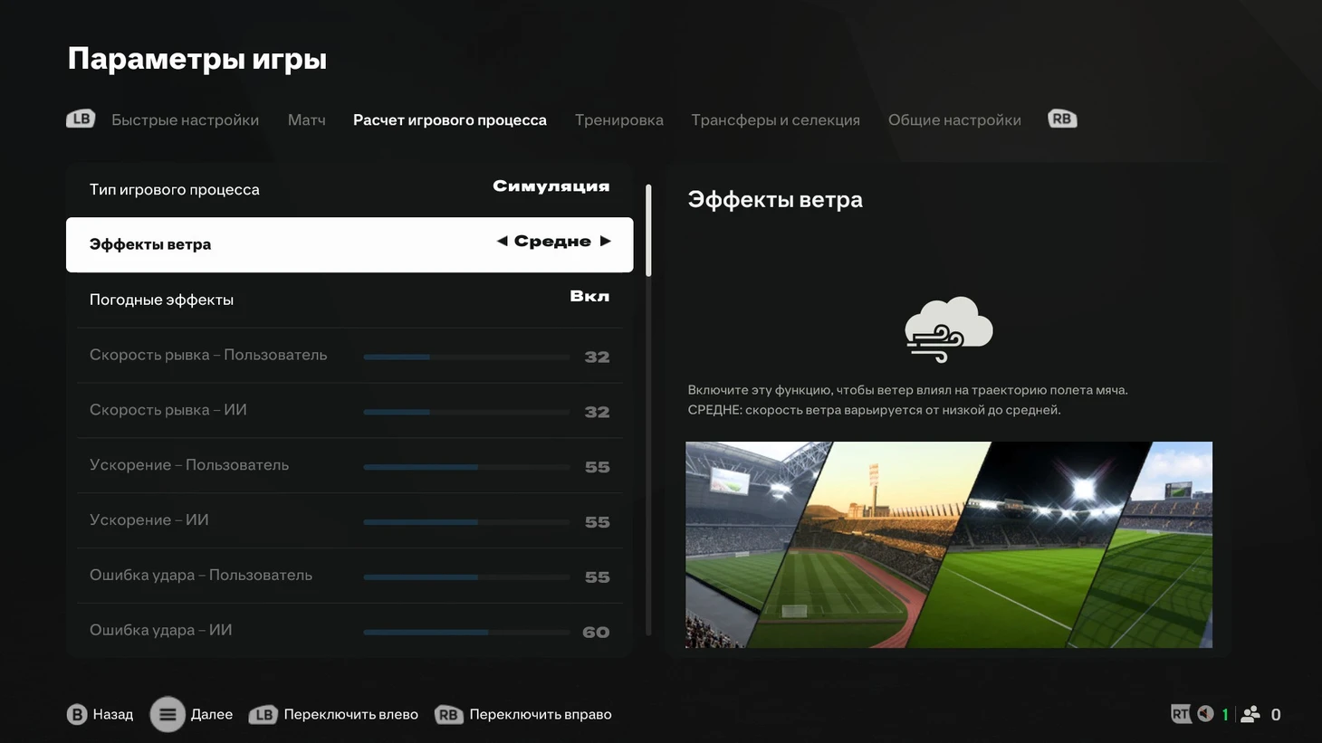 А вот графика по-прежнему шикарная. На высоких настройках отличная детализация лиц, приятные шейдеры волос, невероятные погодные эффекты и зеленый газон. В параметрах, кстати, можно указать степень влияния мокрого газона и ветра на игру.