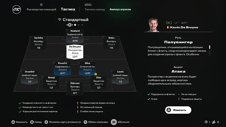 Исчезли позиции центрфорварда и латераля – они и не нужны. Теперь у каждого футболиста несколько игровых ролей, которые меняют его обязанности на поле. И это позволяет создавать очень гибкие схемы. И что самое главное, они действительно работают, влияют на тактический рисунок команды, игровой стиль и, как следствие, результат.