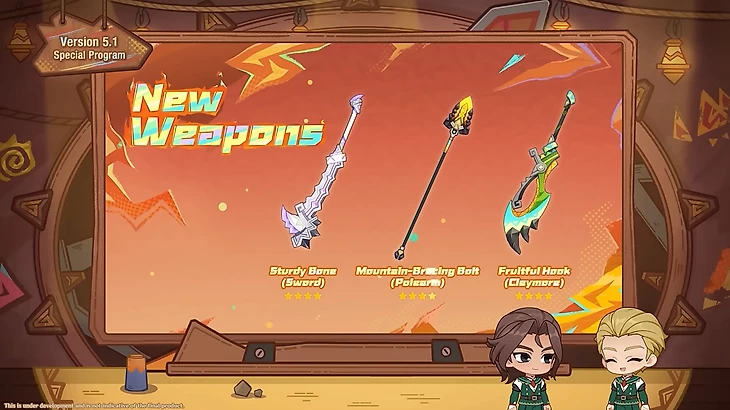 ● Ивент «Изумительные изделия» – реран события, позволяющего обменивать расходные предметы на Камни Истока у НПС Ли Бэня. На этот раз он предложит и материалы для возвышения персонажей из Натлана.