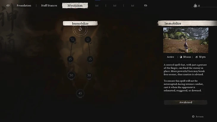 Если вы предпочитаете агрессивный ближний бой, то стоит сосредоточиться на развитии Стоек Посоха и соответствующих им Базовых навыках, увеличивающих урон и скорость атаки. Если же вы склоняетесь к тактическому подходу с использованием магии и дистанционных атак, качайте Мистицизм и Трансформацию. Лучшие навыки, которые нужны для любой стратегии боя, перечислены ниже.