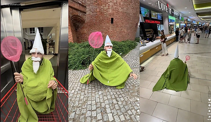 Краткий пересказ для тех, кто впервые об этом слышит: все лето люди косплеили гномов и рыцарей. Этот тренд задал блогер Crawly_possesed, который переодевается в гнома-волшебника, приседает и таким образом ползает по торговым центрам, раздражая людей. Возможно, не он создал его, но точно повлиял на его популярность.