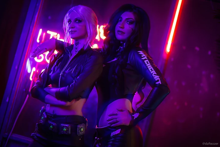 Вселенные Cyberpunk и «Ведьмака» неоднократно пытались скрестить. Отличная попытка вышла у Инны Семеновой и Алисы Шелест – их Цири и Йеннифэр попали в мир с воздушными кораблями, людьми с металлом в голове и домами из стекла.