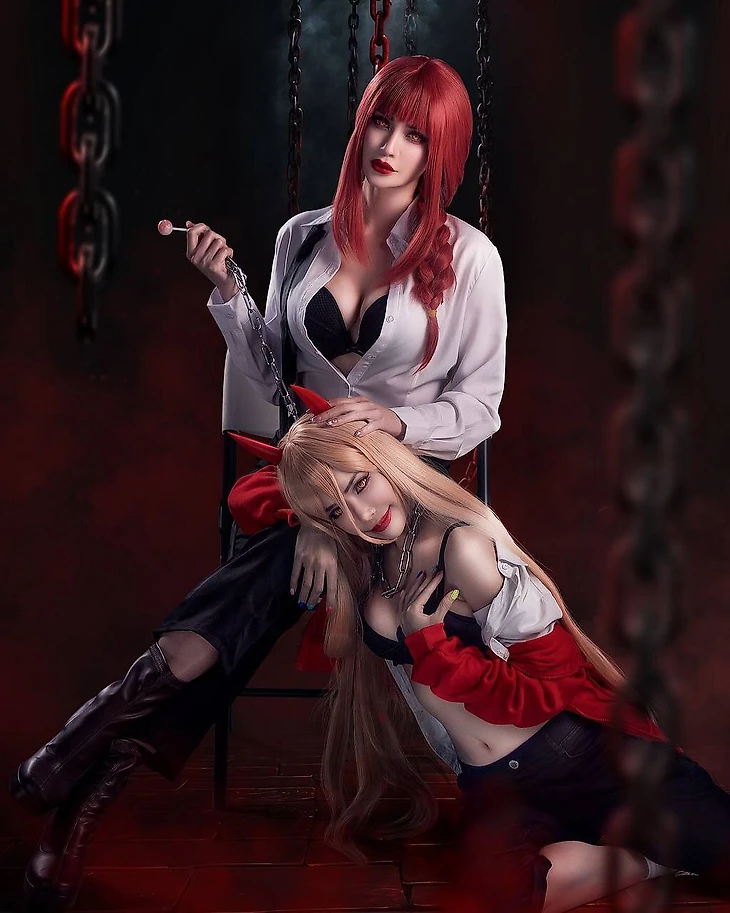 Миртл Саросса и Рамона Торнс тоже вовсю готовятся ко второму сезону «Человека-бензопилы». Дата выхода еще не объявлена, так что нам остается только любоваться косплеершами в образах Пауэр и Макимы.