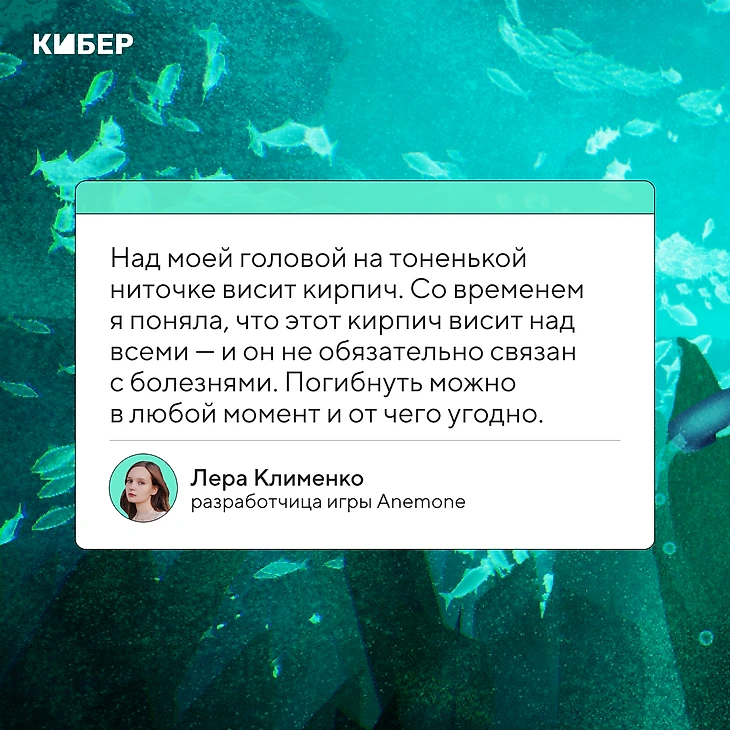 «Anemone не о том, что у вас все будет всегда хорошо. Это игра про принятие своей болезни, чтобы делать что-то дальше».