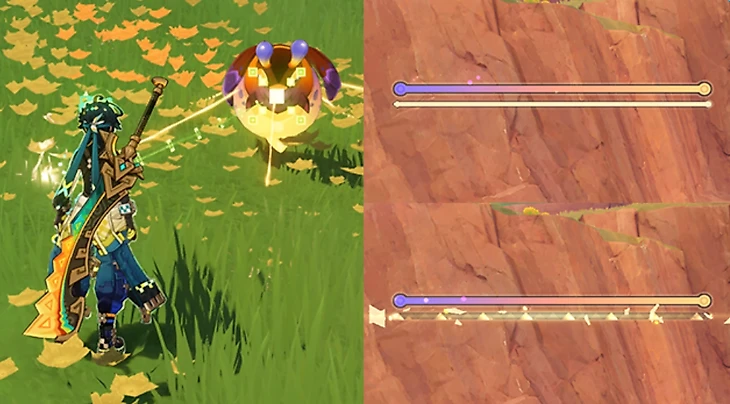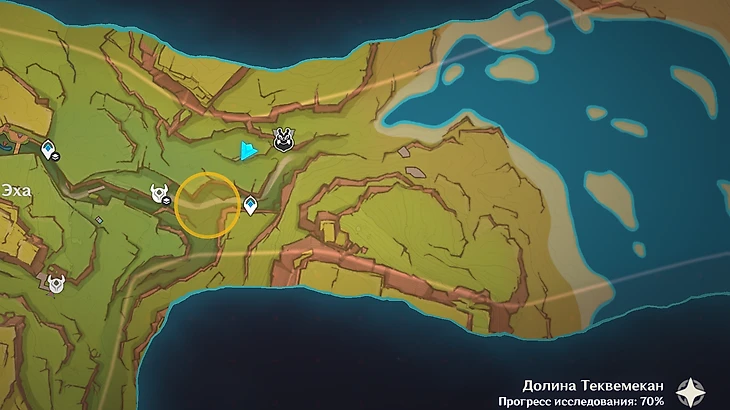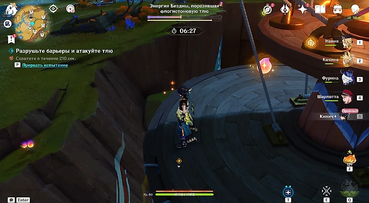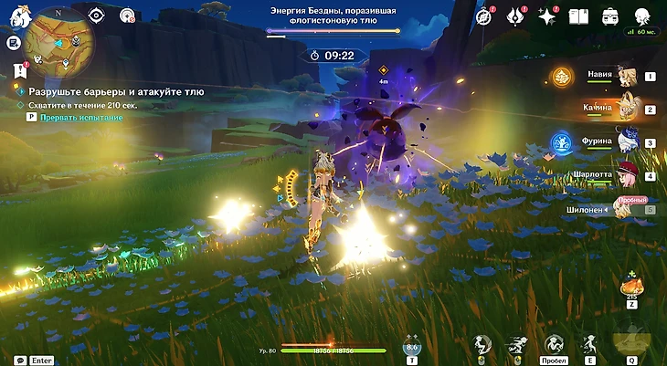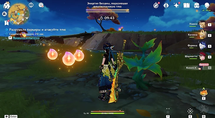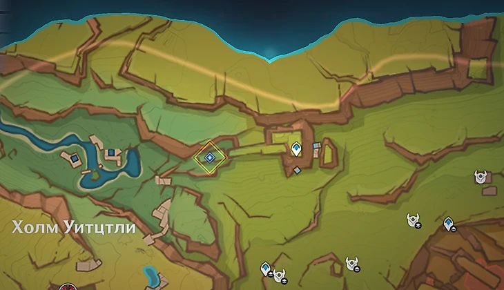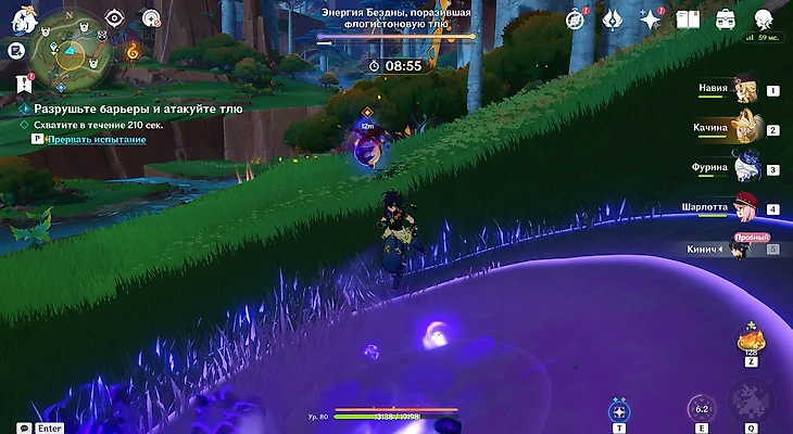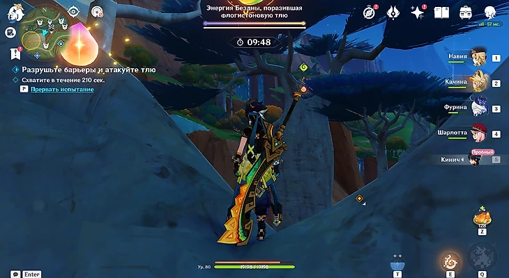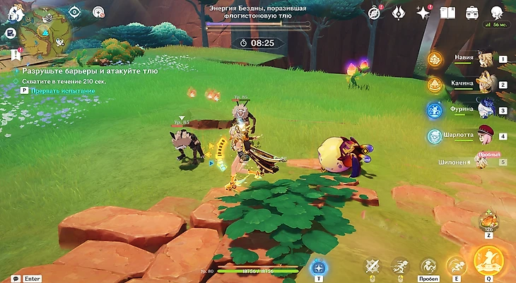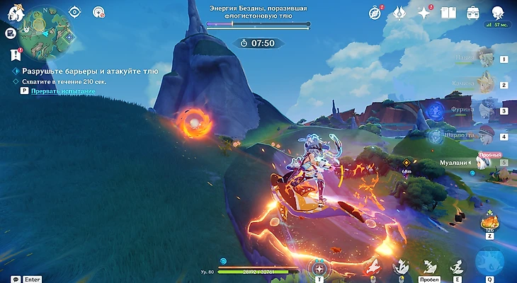 Последнее испытание располагается неподалеку от холма Уитцтли. Вас сразу же встретит Шилонен – она и предоставит поддержку в грядущем раунде. Собирайте флогистоновые частицы и ягоды-оковы, спрятанные в кувшинах. Параллельно отбивайтесь от хиличурлов.