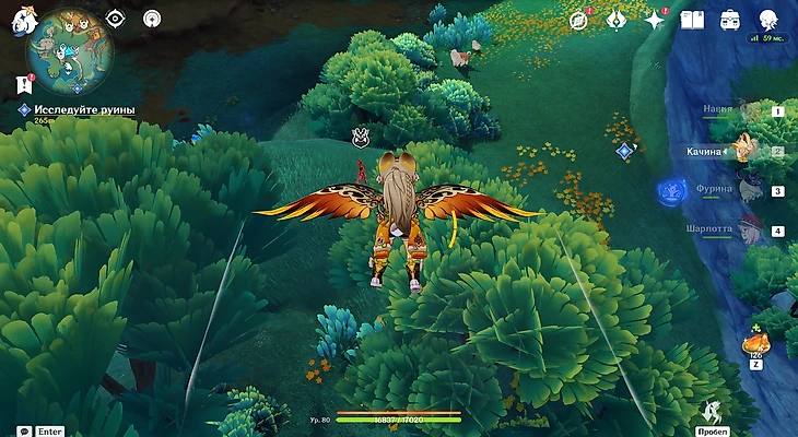 На рынке племени Детей Эха поговорите с Шилонен. Она сообщит, что обнаружила энергию бездны в жемчужинах, которые обычно производят флогистоновые тли. Чтобы избавиться от заражения, отправляемся отлавливать их по всему Натлану.