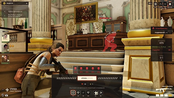 Передвижение, прицеливание и знаменитый процент попаданий – все знакомо, если играли в легендарный XCOM 2. Не хватает разве что уязвимых точек на теле противника. Сложных приемов тактики из Jagged Alliance вы не найдете, но разработчики не забыли про лечение, перезарядку и наблюдение за зоной.