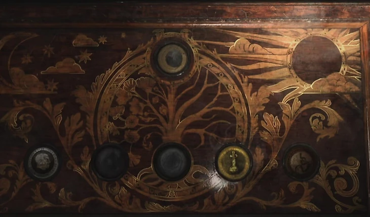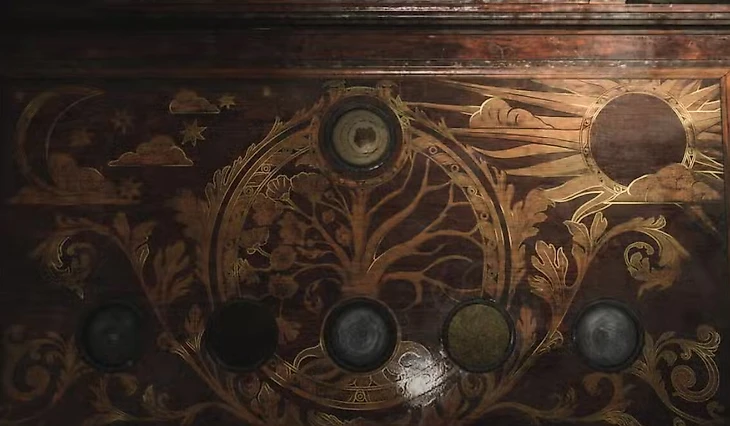 Вам предстоит решить эту головоломку, в награду получите ключ и монету. Если возникли трудности, следите за нашими гайдами по загадкам.