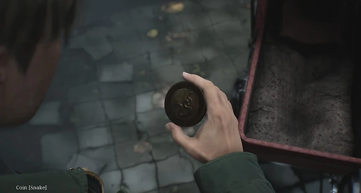 Далее, протиснитесь через узкий воздуховод, и вы окажетесь в прачечной. Здесь обнаружите патроны для пистолета и упаковку сока. Сбросьте сок в мусоропровод, чтобы устранить завал. Это позволит вам вернуться во внутренний двор и заполучить последнюю монету. С ее помощью вы сможете разгадать головоломку в зоне ресепшн. Решение зависит от уровня сложности, на котором вы играете.