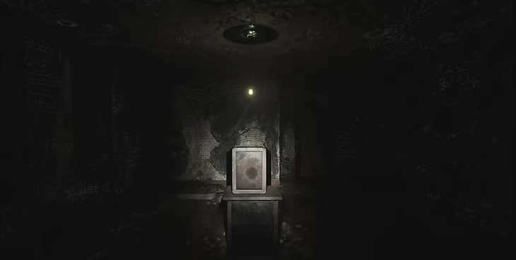 Прямо перед собой на информационном стенде вы обнаружите карту – не забудьте ее прихватить. Перемахните через стойку администратора и исследуйте служебное помещение. Там вы найдете боеприпасы для пистолета и загадочный предмет, укрытый пыльной тканью. Сдерните покров, чтобы раскрыть ключевую головоломку, хотя пока вы не сможете с ней взаимодействовать.
