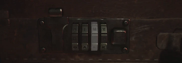 После манипуляций с зеркалом необходимо правильно расположить буквы. Чемодан имеет четыре вращающихся диска с буквами с каждой стороны от ручки. Вводите код, поворачивая каждый диск так, чтобы получилось нужное слово, читая слева направо, например, для кода LOVE LUST нужно ввести сначала LOVE, нажать кнопку Ввод, а затем LUST.
