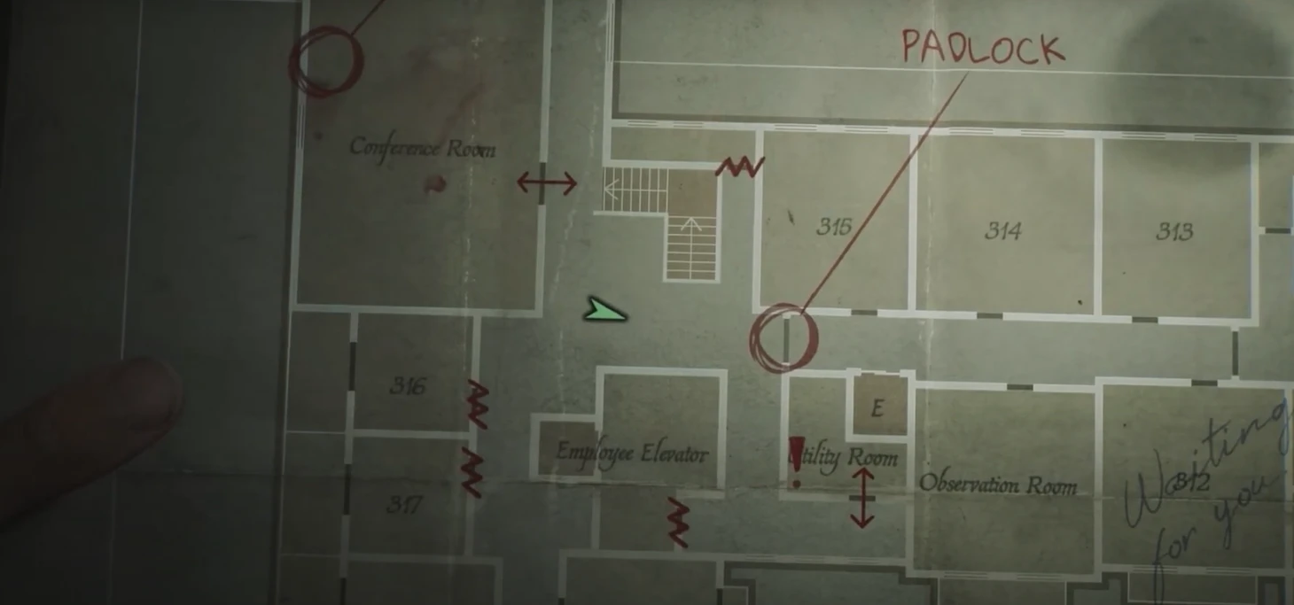 В первую очередь для решения задачи нужно найти специальную лампочку, а после и банку краски. Путь к открытию чемодана начинается в гардеробе, откуда можно попасть в зал с манекенами. Игнорируя врагов, игрок должен пройти на балкон. В кабинете медсестры находится короткий путь, ведущий на западную сторону второго этажа, где расположена лестница на третий этаж. Куда идти дальше: