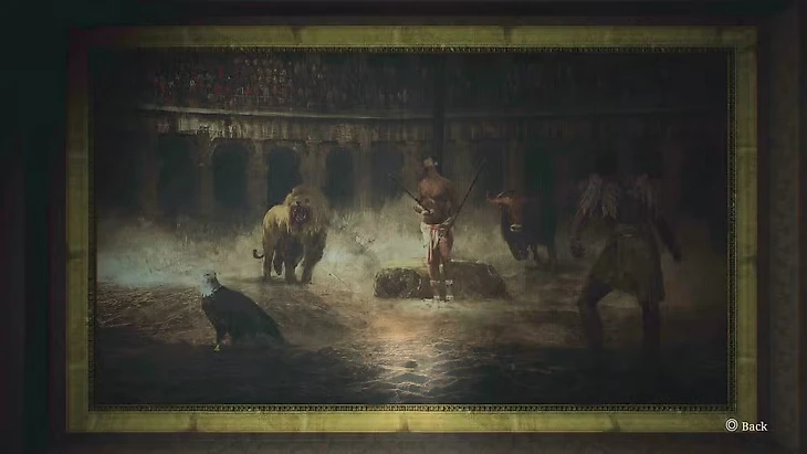 Получив ключ от крыла «Восход» в подсобном помещении, вы можете подняться на второй этаж и отпереть им двойные двери, расположенные справа от лестницы. За ними находится читальный зал. В этой комнате можно найти четыре книги, играющие ключевую роль в решении загадки, а также точку сохранения справа от входа. Подсказка для решения находится на картине в этой же комнате.