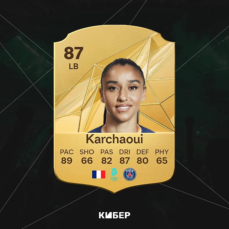 Самую интересную женскую карточку на фланге защиты получила Сакина Каршауи. Левая защитница «ПСЖ» была популярной в FC 24, теперь получила небольшое повышение, но по-прежнему стоит недорого. Кроме скорости у нее выделяются навыки дриблинга и финты на пять звезд.