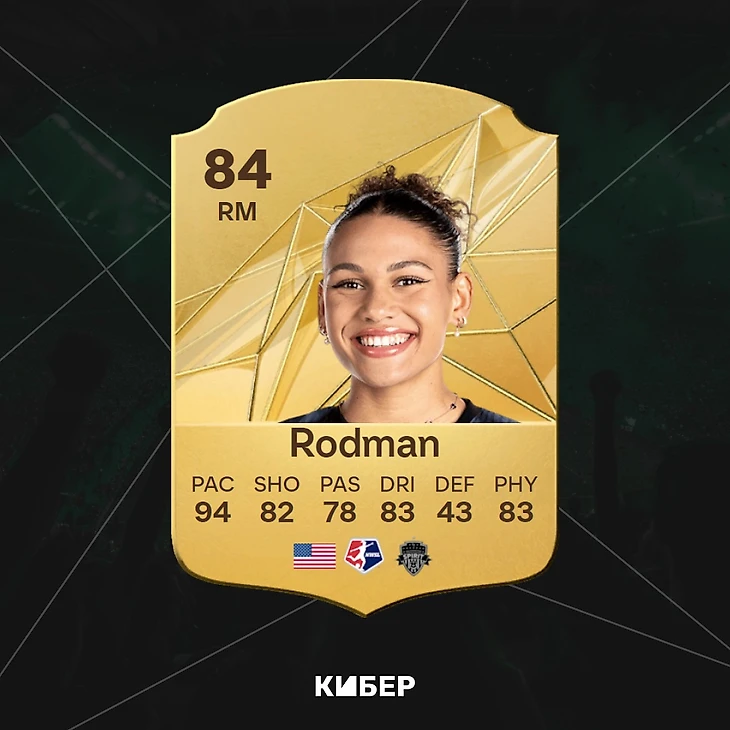 Тринити Родман – настоящий феномен правой бровки. Вингер «Вашингтон Спирит» носится как ракета (94), вынослива (90), а еще прилично бьет по воротам (84). Из-за высокой скорости ей подойдет любой атакующий стиль сыгранности.