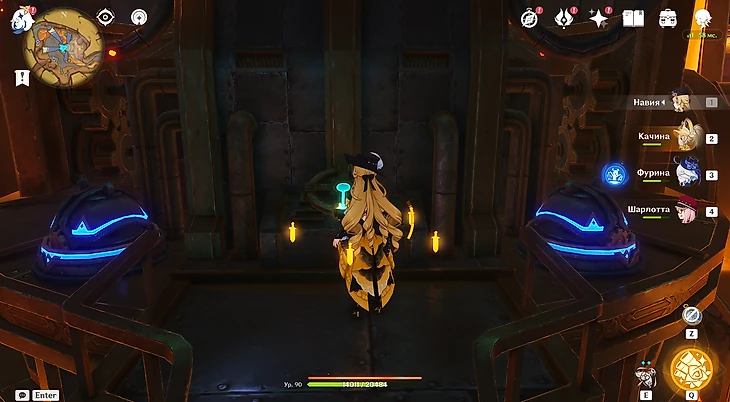 В этой локации разберитесь с врагами и используйте способности Юмказавра для решения головоломок. Ваша цель – отключить механизм Фатуи. Для этого понадобятся ключи, разбросанные по сундукам Исследовательского центра и у его выхода, а еще 2 голубых сферы. Когда активируется экстренная система торможения, появится роскошный сундук со вторым осколком Нефрита Ночи.