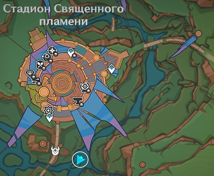 Отправляйтесь на юг от Стадиона Священного пламени.