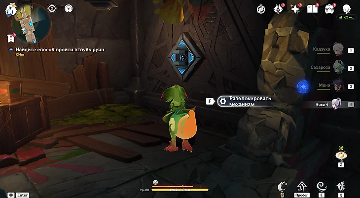 Когда все три механизма будут разблокированы, вернитесь к главному. Уровень воды снизится и вы сможете спуститься вглубь руин.