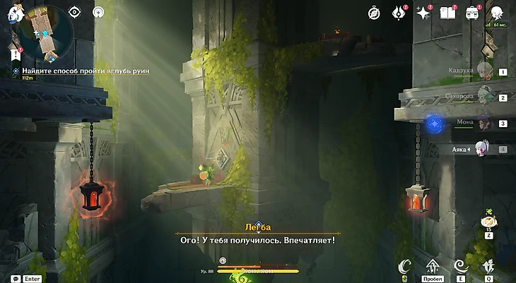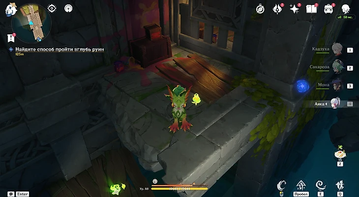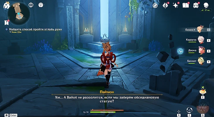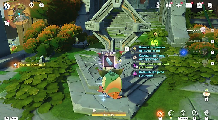 Появится богатый сундук, внутри которого найдете один ключевой камень. Его получение прокомментирует Паймон.