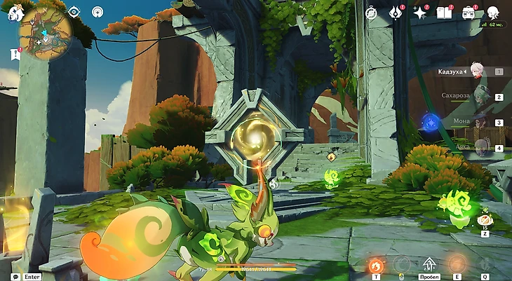 Битвы у алтаря не миновать – перед вами появится Воплощение Вайоб стремительности и листвы. Босс имеет 50% сопротивления к Дендро-элементу, поэтому сражаться с ней героями стихии не рекомендуется. У него также есть атаки по площади и те, что отнимают вашу энергию в поле действия его навыков. При этом щит сильно снижает входящий урон.