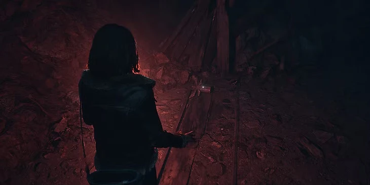 После того как вы провалитесь сквозь пол, играя за Эмили в шахтах, продолжайте идти вперед, пока не дойдете до старой железной дороги, покрытой деревянными досками. Здесь вы сможете пойти налево или направо, а чтобы найти Тотем, вам нужно идти по тропинке налево до конца.