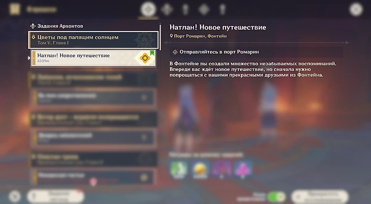 После прохождения 1-й главы 5-го тома заданий Архонтов «Цветы под палящим солнцем».