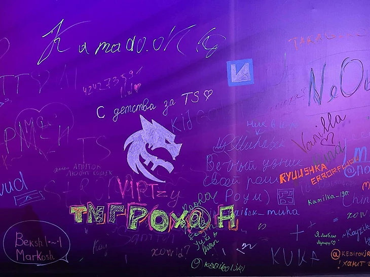 Аудитория мобильных игр очень общительная: кажется, ее даже не нужно чем-то занимать, в перерыве люди могут и каточку запустить. Но для них все равно заготовили много сюрпризов: огромную доску на всю стену, которую можно исписать; автограф-сессию каждой команды (очередь к Team Spirit была очень длинной); локацию для создания плакатов; игровую зону для сражений в MLBB за ценные призы, мерч и фотозону с фотографом.