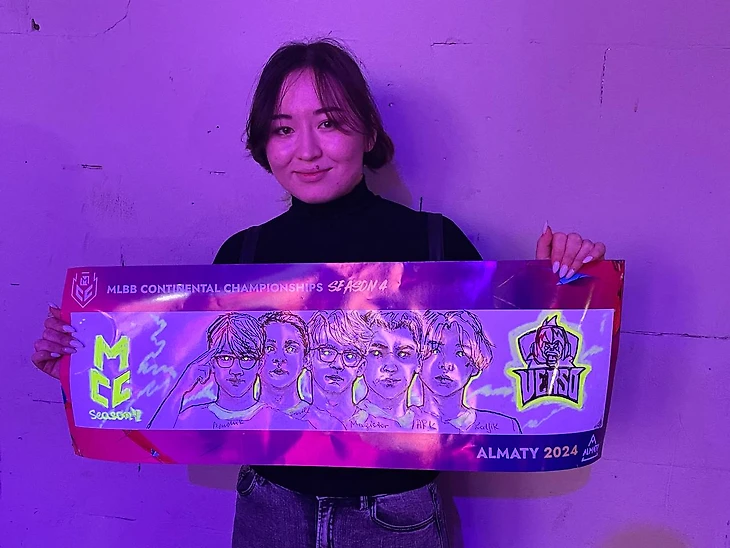 «Я болею за Team Spirit, но муж поддерживает Verso Time, особенно Castle ему нравится. Так что сегодня я решила вместе с мужем поболеть за Verso Time и нарисовать плакат. Я была на прошлых турнирах: MCC Season 2, MCC Season 3, вот пришла на MCC Season 4. Радует, что ивенты такого масштаба проходят в Казахстане, очень все нравится.