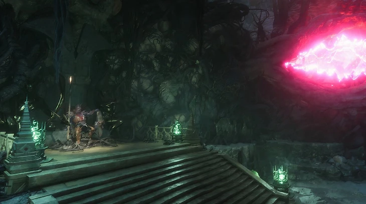 Чтобы одолеть Десмала, сделайте ставку на огненную мощь. Не берите с собой Люканиса – его некротические атаки здесь бесполезны. Сразив Десмала, вы получите ключевую эссенцию для активации Врат Глубокой Печали.